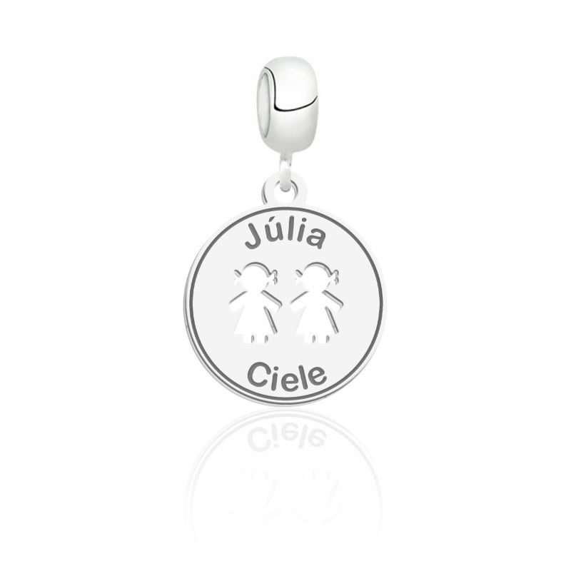 Berloque Personalizado Redonda 2 Meninas Vazadas Prata 925