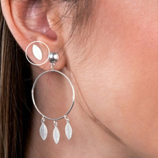 Brinco Mini Folha Trabalhada Prata 925 - Imagem 3