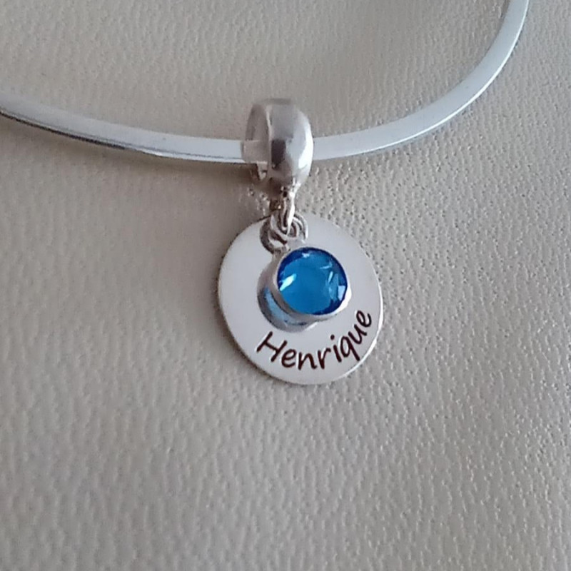 • Berloque Personalizado Redondo Com Cristal Azul Pendurado Prata 925 – 10331