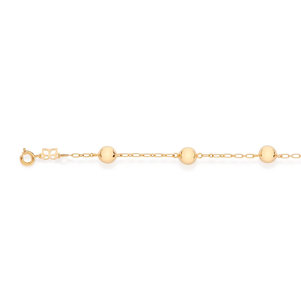 Pulseira formada por fio elos 1×1 040, com 5 bolas de 7 mm.