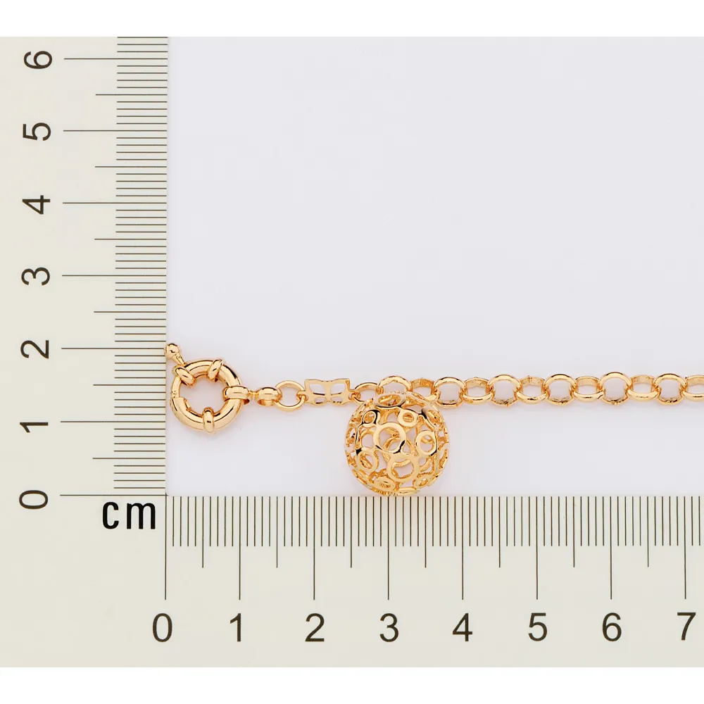Pulseira formada por elo portuquês com berloque globo vazado. med 20 cm.