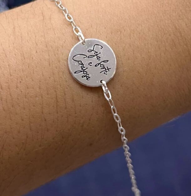 Anel Personalizado Aro Fio Topo Redondo Letra Coração Letra Prata 925